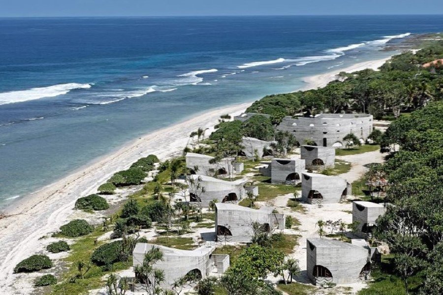 The first 18 beach front villas are near completion. All components of the villas are custom made; complete in-situ concrete board marked walls, floor & roof, concrete benches, day beds, cast-in-place basins and handmade light fittings, in-built furniture, sunken baths along with timber herringbone windows which are hand -carved from local timbers by local craftsman and hand-cut stone floors.
